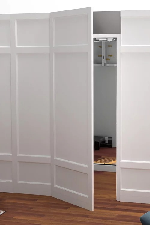Fantastic pre-hung options include a mirror finish, a bookshelf or wine shelf door and an armored security cover that offers guaranteed safety. The popular panel secret door kit includes all the installation details, and you can clad it with the surface of your choice.