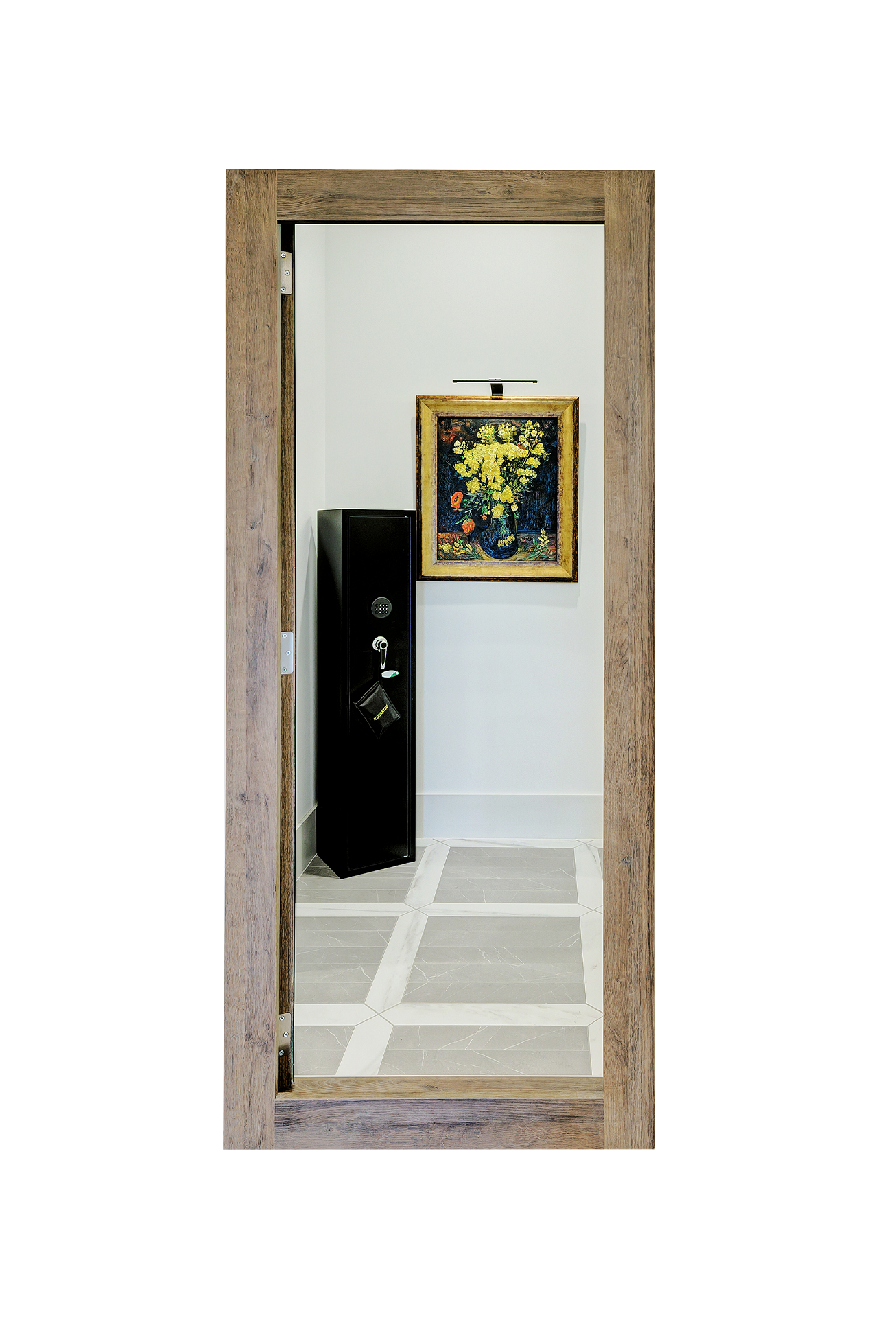 Secret mirror doors are a natural fit in any home. Available in a variety of finishes, colors, security levels, and access methods, you’re sure to find a mirror door that fits your space and decor. Mirrors work well throughout your home, especially in living spaces and closets.